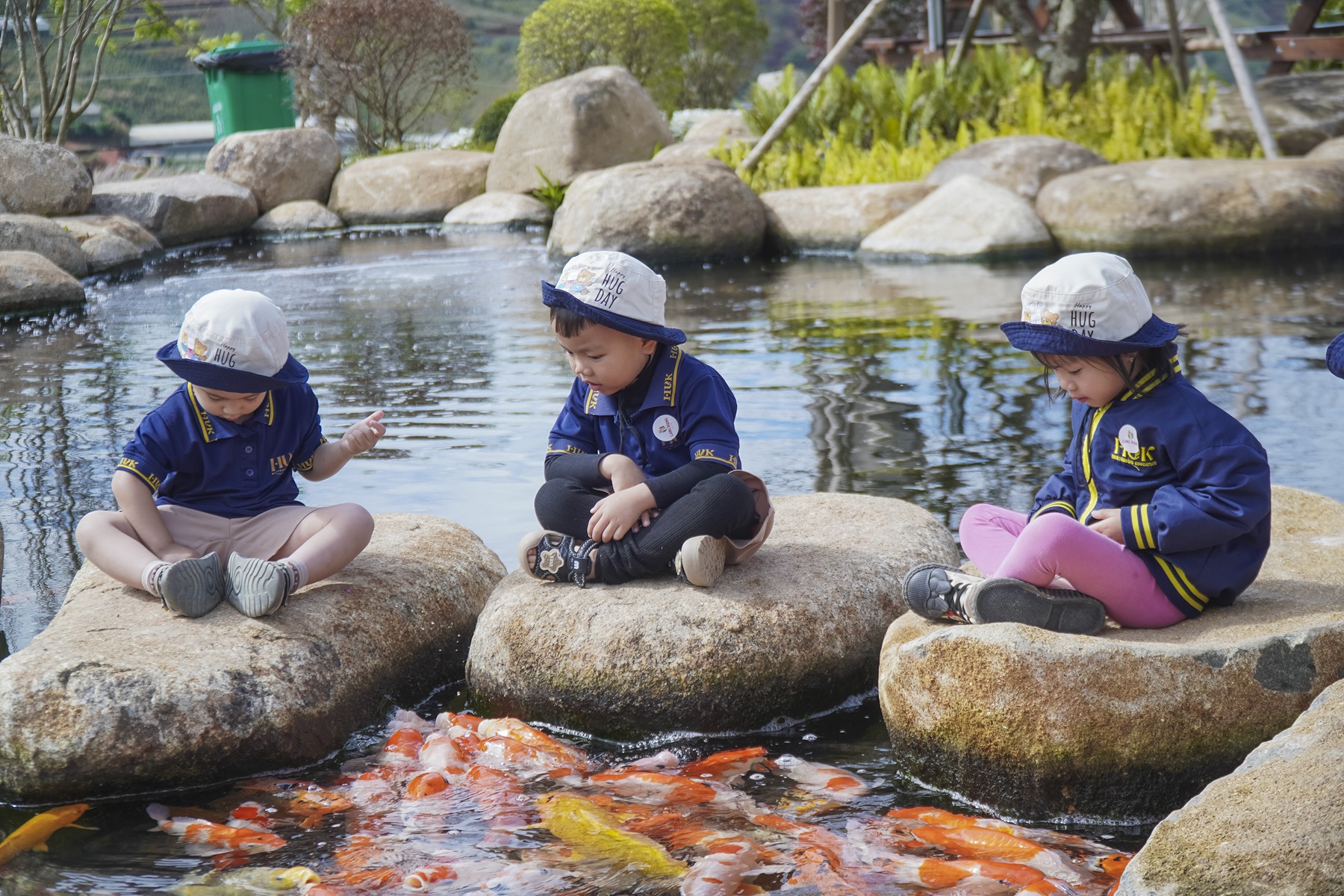 Ngoài ra, khu vực động vật nhỏ với những chú hamster, thỏ trắng và bầy cừu, dê hiền lành cũng là điểm nhấn thú vị, mang đến trải nghiệm gần gũi, dễ thương cho du khách ở mọi lứa tuổi. Không chỉ thế, Hồ cá Koi rực rỡ, nơi những chú cá với sắc màu sặc sỡ nhẹ nhàng bơi lượn dưới làn nước trong xanh. Du khách có thể cho cá ăn, ngắm nhìn từng đàn cá quẫy nước đầy sinh động, tận hưởng sự thư thái giữa khung cảnh bình yên.